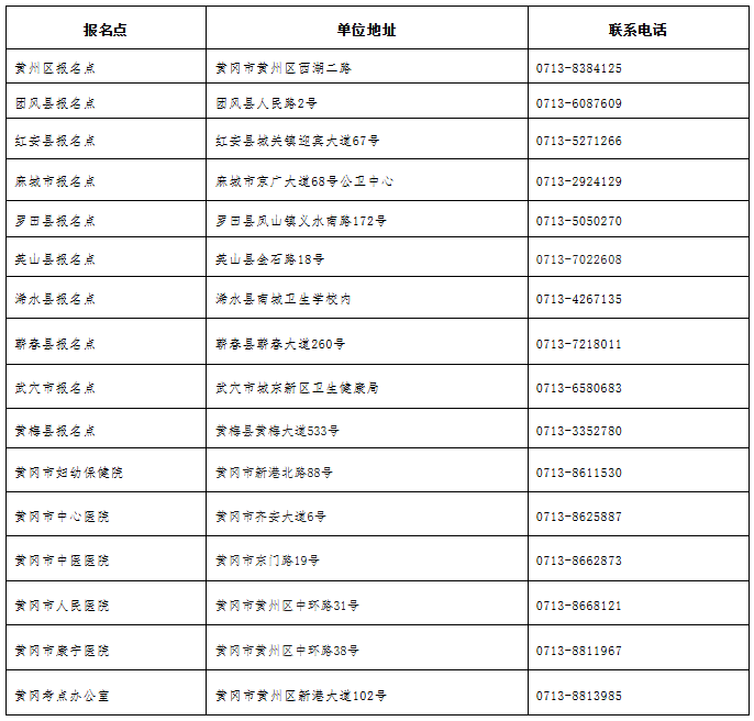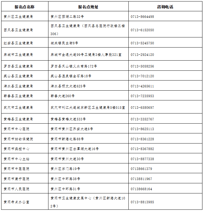附件2:黄冈考点2026年执业医师资格考试各报名点咨询电话