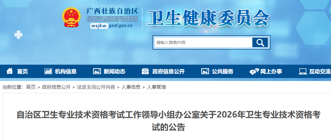 根据卫生专业技术资格考试办公室、国家卫生健康委人才交流服务中心部署,为做好2026年度卫生专业技术资格考试广西考区考试工作,现将有关事项公告如下: